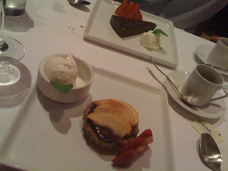 We each had a single espresso and Chris ordered the absolutely decadent flourless chocolate torte. I selected the apple tart, which offered up an unexpected combination of apple and chocolate in a cinnamon-flavored crust with a pleasant whole grain texture. Served alongside was a creamy vanilla gelatto that made me question how vanilla could ever mean anything but yum.